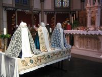 Und auch in anderen Gebäuden der Gemeinde wurden sie fündig. Diese überraschenden Funden waren der Anlass, zum 150jährigen Bestehen der Pfarre eine Ausstellung in der Kirche zu organisieren.So gab es in der Festwoche die Gelegenheit, sich die Exponate anzusehen, von denen einige aufwändig restauriert wurden.
