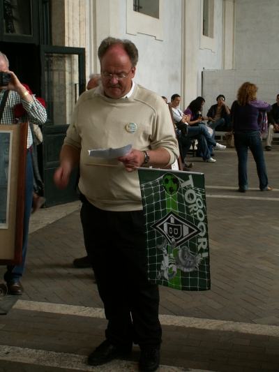 Höhepunkt der siebentägigen Pilgerreise war aber der Besuch der Mittwochaudienz von Papst Benedikt. In seinem Papamobil fuhr das Oberhaupt der Katholischen Kirche direkt und segnend an der Gladbacher Gruppe vorbei. Groß natürlich der Jubel, als die Pfarrgemeinden während der Audienz namentlich aufgerufen wurden.