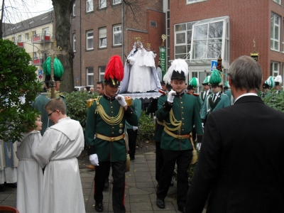 Die St. Michaels-Bruderschaft begleitete die Muttergottes aus der Kirche zur Kapelle und jetzt ist sie wieder an ihrem "Heimatort" und wartet auf die Pilger aus Nah und Fern.