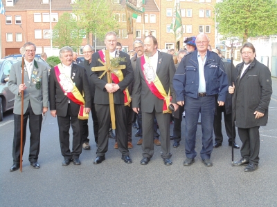 Unter den Pilgern, die zentral aus Speick mit dem Bezirksverband zogen, an der Spitze Bezirkskönig Michael Kremer mit dem Friedenskreuz, waren auch wieder viele Hehner. Der Fahnenzug der Bruderschaft und die jeweilige amtierende Königsgruppe sind seit Beginn der Wallfahrt im Jahre 1983 dabei. Ebenso lange ist Gerd Windelen aus Speick als Vorbeter dabei - in diesem Jahr übergab er die Spitze an Klaus Cörstges aus Hehn, der ebenfalls seit Beginn der Wallfahrt mit vorbetet. In der Marienkapelle in Hehn wurde noch kurz gebetet, dann ging es zum Gottesdienst in die Kirche. Nach dem Gottesdienst schließt sich in jedem Jahr die Agape im Pfarrheim an, der Schlußsegen erfolgt an den Grotten.