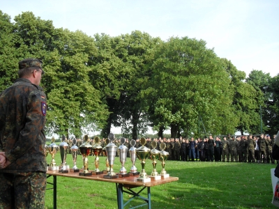Zum Abschluß wurden die Sieger geehrt. Jede Menge Pokale wurden vergeben, für alle möglichen Gruppierungen. Sieger des IMM wurde bei 41 Mannschaften letztendlich die Mannschaft der Bundeswehr aus München. Die Schale des Siegers erhielt die Mannschaftsführerin Hauptmann Carolin Wirth.