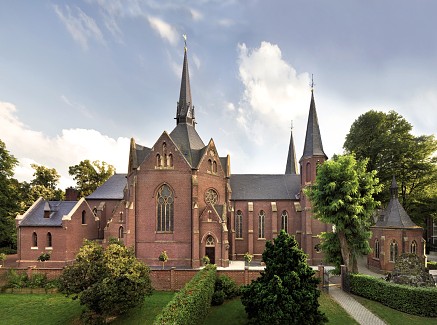 Die Anlage aus Tuffstein wurde 1894 von Pfarrer Theodor Jöbges in Auftrag gegeben und besteht aus mehreren Teilen. Gleich links von der Kirche steht eine kleine Grotte mit dem Heiligen Rochus. Wer links an der Kirche vorbeigeht, gelangt zur Lourdesgrotte. Diese stellt die Erscheinung der Mutter Gottes in Lourdes nach. Fünf Steine aus der Grotte in Lourdes sind dort eingelassen. Im unteren und größeren Teil der Lourdesgrotte steht eine 45 Zentimeter große Kopie des sogenannten Prager Jesuleins. Das Original der Figur steht im Karmeliterkloster in Prag. Rechts davon befindet sich der Hauptteil der Grottenanlage: die Grotte der 14 Nothelfer.