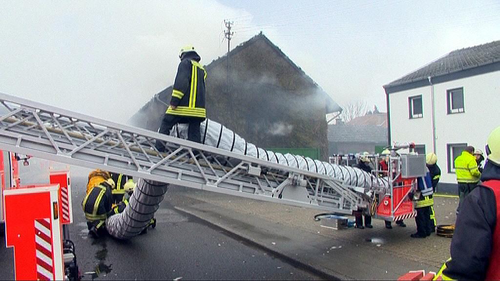 Der Besitzer der Scheune zog sich beim Löschversuch Verbrennungen und eine Rauchgasvergiftung zu. Die Feuerwehr schätzt den Sachschaden auf 200.000 Euro. Die Brandursache ist unklar.