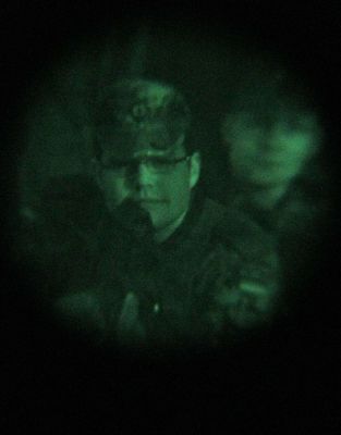 Sicht durch das Infrarot-Fernglas nachts im Wald.