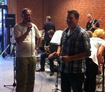 Also wurde einige Tage telefoniert, organisiert, Details mit Gemeindereferentin Schwester Stefanie abgesprochen und so spielte die Bigband der Volkshochschule Mönchengladbach, die „Very Hot Stuff“ im Hehner Pfarrheim kostenlos auf, der Leiter Manfred Heinen verzichtete auf die Gage und die Gäste belohnten die Musiker, die sichtlich mit großer Freude spielten, mit viel Applaus. Die Hehner Schützenbrüder halfen mit, die Frauen des Kegelclubs, und jeder der wollte konnte sich einbringen. Spontan gab es eine Tombola – einziger Preis ein von Günter Schatten gespendeter Rundflug über Hehn, den Stefanie Tölkes gewann, die selber kräftig mitgearbeitet hatte. Die Brötchen wurden von der Bäckerei Bereths gestiftet und es gab noch viele, viele Spender, die nicht genannt werden möchten.