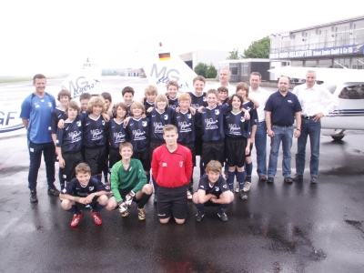 Zum Abschluss einer ohnehin erfolgreichen Spielzeit 2009/2010, welche die D1-Junioren der DJK Hehn mit einem 4. Platz in der Leistungsklasse abschließen konnten, erreichte das von Torsten Müller trainierte Team eine weitere gute Nachricht. Das Mönchengladbacher Luftfahrtunternehmen und Luftfahrerschule MG flyers GmbH stellte der Mannschaft einen neuen Trikotsatz zur Verfügung.