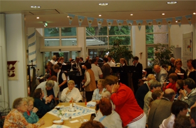 Die Bewohner, ihre Angehörigen und Gäste saßen an der frischen Luft, bei herrlichem Sonnenschein und musikalischer Untermalung durch das Jugendblasorchester Günhoven. Es gab zu Essen, Trinken, Kaffee und Kuchen, alles was das Herz bzw. der Magen begehrt. Pflegepersonal und Zivis halfen tatkräftig mit, damit alles reibungslos funktionierte.
