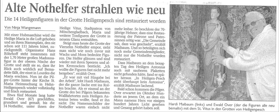 Mit tatkräftiger Arbeit restaurierte Ewald Over über mehrere Monate die 14 Figuren der Nothelfer-Grotte in Hehn.