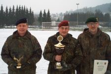 Das anschließende Siegerfoto mit Oberst d.R. Helmut Michelis (50), Major d.R. Wolfgang Heyn (46) und Hauptfeldwebel d.R. Erich Genenger (42) existiert übrigens in ähnlicher Form bereits dreimal: Auch 2000, 2001und 2003 war der Siegerpokal nach Hehn gegangen. Zufriedenstellend schnitten Oberstleutnant Erich Oberem und Oberefreiter Markus Stops mit ihren beiden Gruppen ab: Platz sechs und Platz 22 konnten sich ebenfalls sehen lassen in einem internationalen Starterfeld mit Deutschen, Niederländern, Belgiern und Polen.