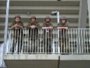 Bräsch, Heyn, Siemes und Rebig stellten das Personal für die Wettkampfstation "Scharfschützenausbildung" im neuen Nordpark-Stadion, wo die Wettkämpfer vom Oberrang aus die Entfernung verschiedener Ziele wie die Hehner Kirche oder dem alten Antennenmast im Nordpark schätzen mussten. Auf Grund der Baustellensituation mussten Helme getragen werden.