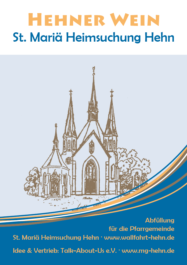 Das Etikett wurde in Zusammenarbeit mit der Hehner Pfarre erarbeitet und entspricht dem Layout des "Wallfahrtortes Hehn" (www.wallfahrt-hehn.de).