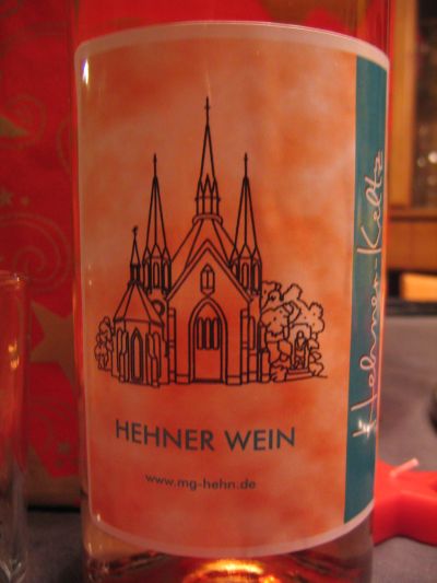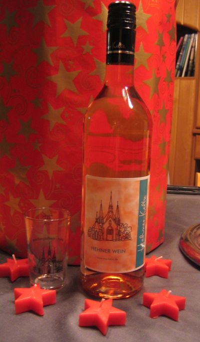Der Wein wurde in limitierter Auflage zum Weihnachtsfest erstellt. Ausgesucht haben wir einen halbtrockenen Portugieser Rosé 2007, welcher aus dem Weingut Hehner-Kiltz stammt.
