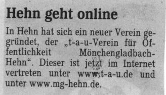 Hehn geht online Details Veröffentlicht: Donnerstag, 09. März 2000 00:00 Geschrieben von Ingo Lenzen Zugriffe: 948 Pressemeldung Rheinische Post